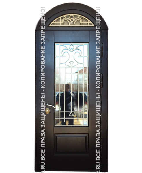 Дверь железная входная подъездная Порошок с ковкой/стеклом 1114